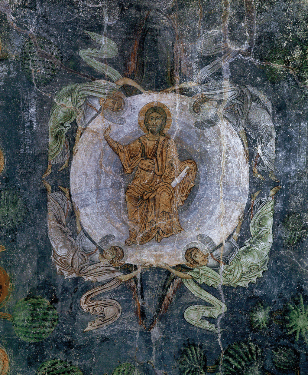 “The Ascension is a fantastic subject in Christian art, as well as a theme in mystical writings. By the 6th century the iconography of the Ascension had been established and by the 9th century Ascension scenes were being depicted on domes of churches. The oculus or eye of the dome is considered the Gateway of the Sun. From this gateway at the top of the dome rises the World Axis, the link between Heaven and earth. Domes, therefore, are the threshold or gateway of the spiritual world. Thus, portraying Jesus ascending in/through a dome symbolizes him traveling through the wormhole.